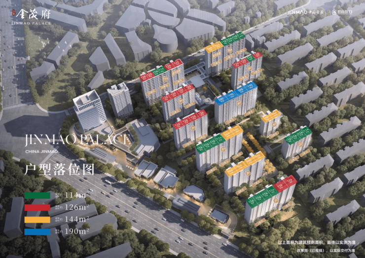 主推建面约114-190㎡的精装3-4房,具体户型包括: