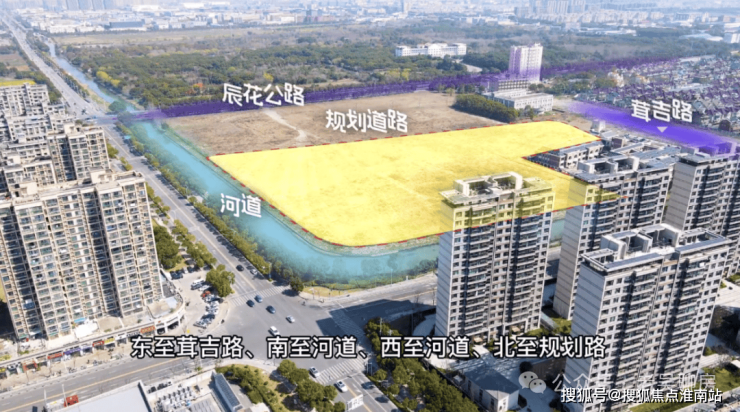 地块四至范围:东至茸吉路,南至河道,西至河道,北至规划路,为普通商品房用地,地块出让面积42480.63㎡,容积率2.3,建筑面积97705.449㎡。