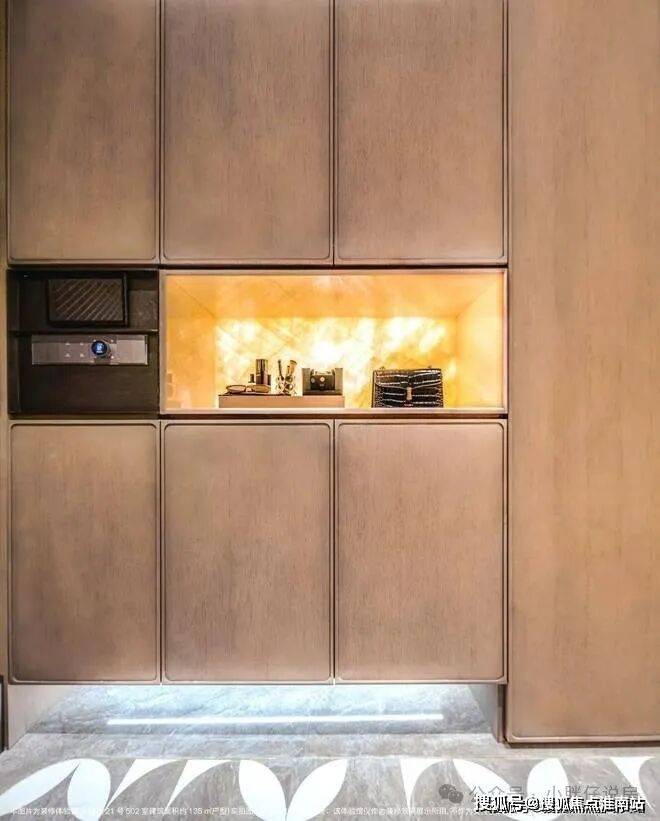 超配装修,“奢”装入户,大幅提升居住尊贵感! 进门 经典三段式玄关,中间采用凝脂玉玉石,石材下做灯带暗藏。鞋柜更配置鞋柜精灵,下方悬空设计,非常贴心。