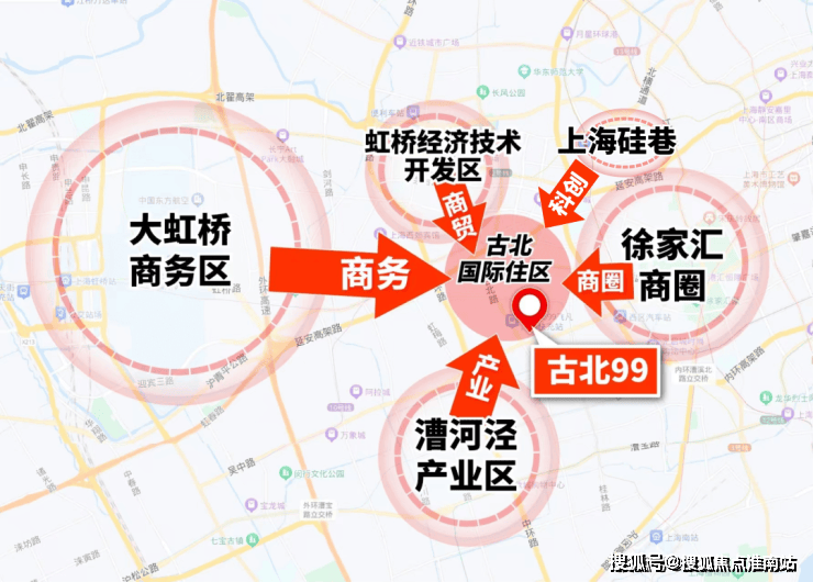 而古北就位于这些产业区的中心节点上,是承载它们高端居住再好不过的区域。