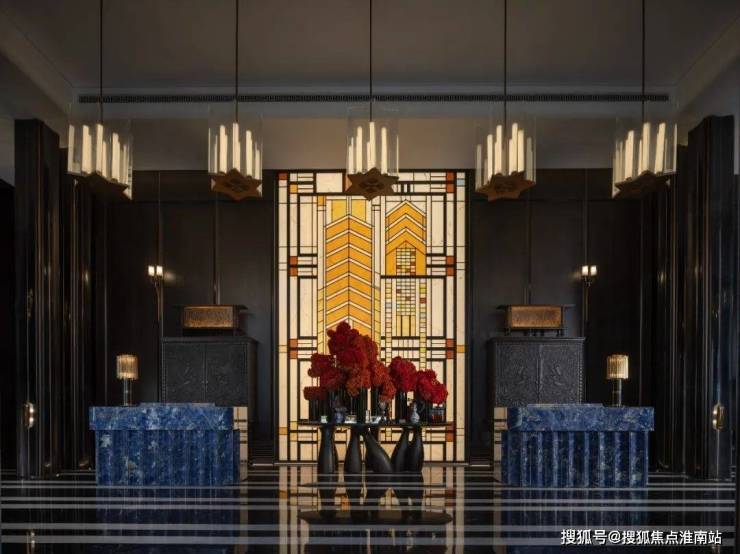 其次,项目的很多细节都融入了海派经典元素,比如落客区美轮美奂的约300㎡彩色玻璃穹顶,艺术连廊拱形廊道灵感都来自和平饭店。彩绘花窗的拱门造型则取自武康大楼。