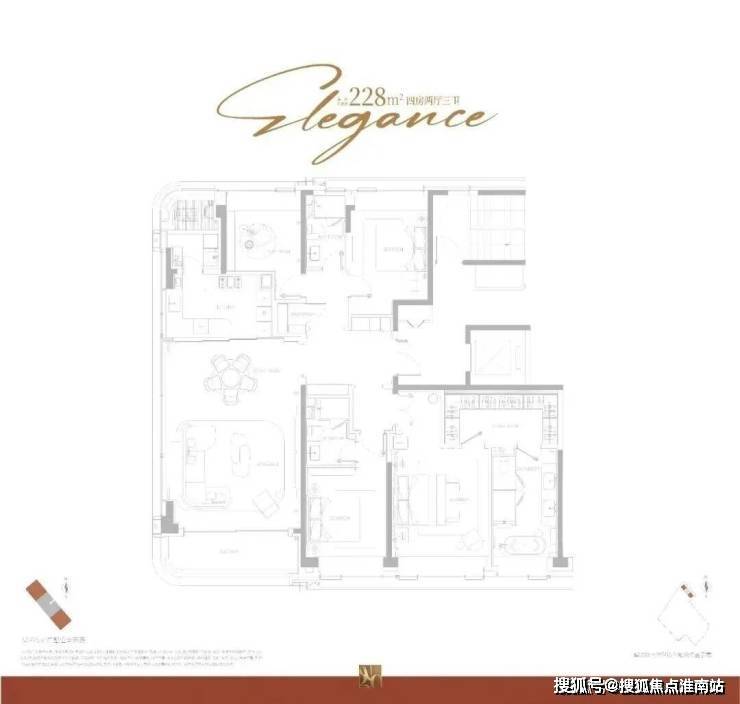 高层大平层:主力户型建面约185㎡-228㎡的纯粹四房设计。其中 185㎡户型为 3+1 房格局,228㎡户型为豪华四房三卫,拥有约 7.5㎡独立电梯厅及双玄关设计,得房率超 85%。