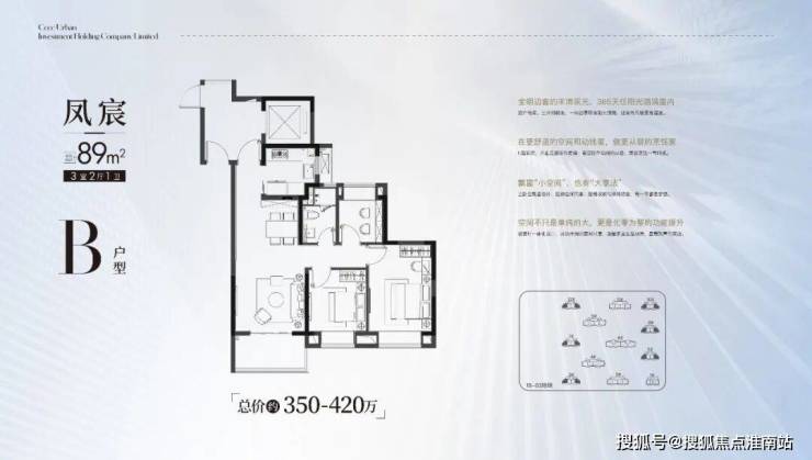 · 建面约89㎡户型则做到了3房的功能性,且三开间朝南+动静分区,设计水准颇高!