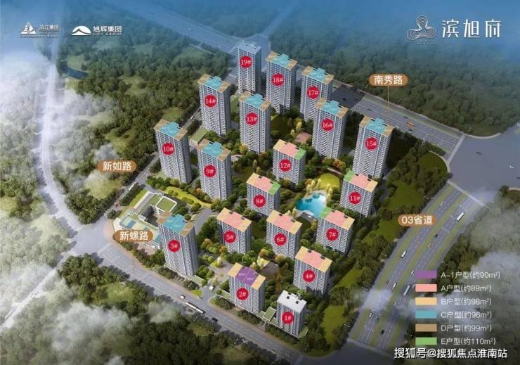 滨旭府总建面约23.5万㎡,由9幢高层(27层)+8幢小高层(18层)+1幢公租房(19号楼)+1幢自持(1号楼)及一所幼儿园组成。小高层主力户型为约89㎡中间套,约98㎡边套,有少量约110㎡边套;高层主力户型为约96㎡中间套,约99㎡边套