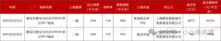 2月25日,位于静安区静安寺附近的两宗地块成功地以协议方式出让,成交总价5.62亿元,竞得人为隶属于静安国资委的上海静投置新城市更新建设有限公司。