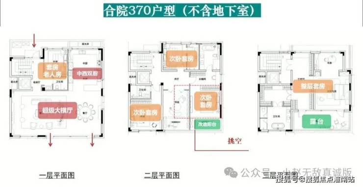 联排三款户型,建面约271㎡/325㎡/369㎡,均为地上三层设计,地下室地下挑高5.6米,可隔2层。