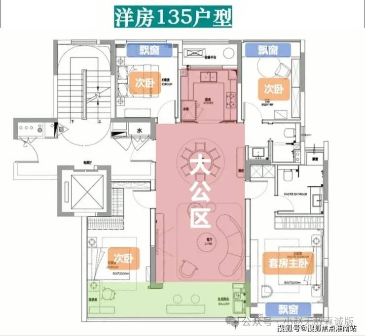 洋房主力约135㎡4房户型,一梯两户,南向开间约11.45米,主卧套房开间约3.7米,这户型一看得房率就很高。