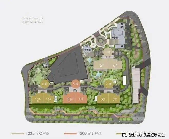 主力户型为建面约180-235㎡三至四房纯改善产品,包括68套约180㎡、40套约200㎡及29套约235㎡的户型