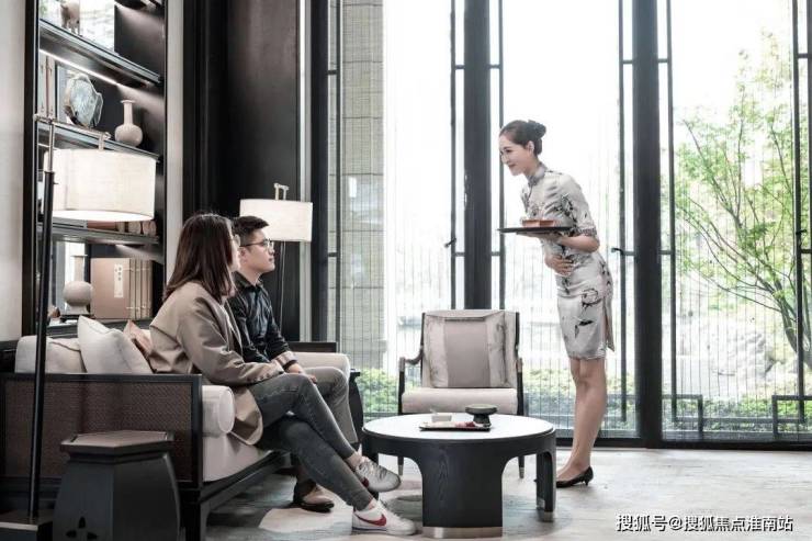 三来,呈现古朴与雅致融合为一的意韵。眼前的中式会客厅,相当于一个观景平台,水景、叠水、凉亭,辅以各类花木,框出一幅自然灵动的山水画。