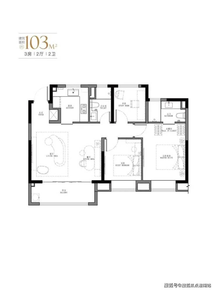 A户型103㎡(3房2厅2卫)