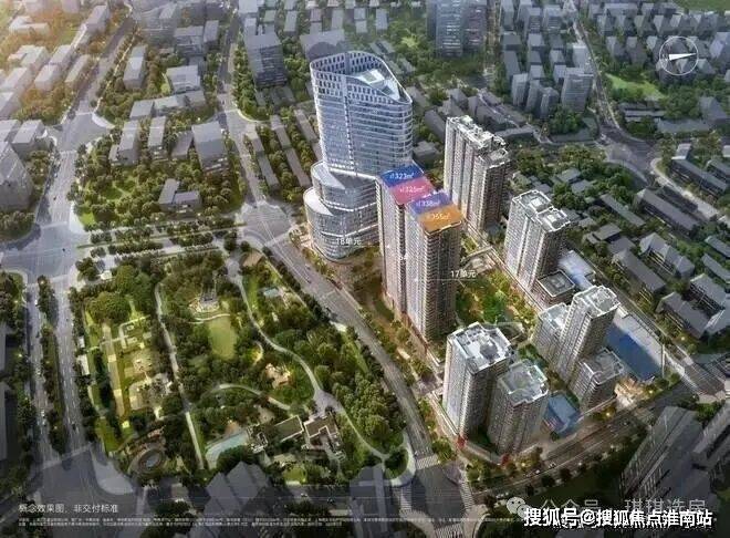 一句话概括来讲:圆弧状的办公塔楼+中部住宅+低区的商业街区。