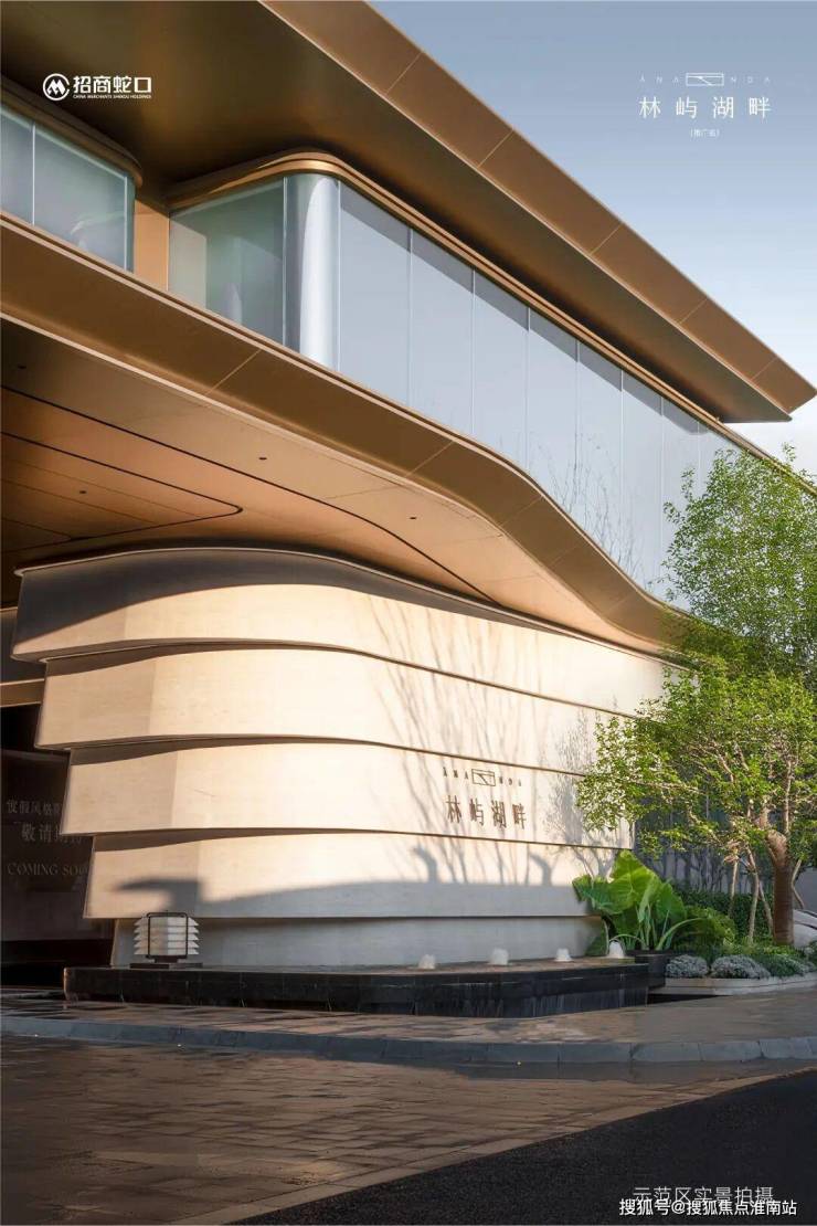 契合远香湖地缘要素,招商·林屿湖畔的外立面以“游艇”为元素,底部石材,弧形铝板结合大面积玻璃幕墙,创造出波光潋滟的视觉效果。香槟色金属光泽与浅米色石材交织,在远香湖的映衬下,呈现出如水波荡漾的灵动效果。