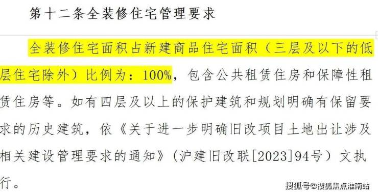 此外,地块要求全装修住宅面积占新建商品住宅面积(三层及以下的低层住宅除外)比例为:100%。