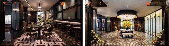 同时,酒店式入户大堂溯源海派经典,融入 古铜色金属格栅、海派拼花(首层和地下大堂)、 海派复古压花玻璃等海派表达,让人文感满满。