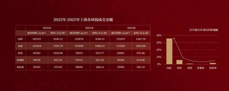 内环新房成交均价从2023年约11.9万/㎡跳涨到2025年约16.23万/㎡,三年涨幅达36%。