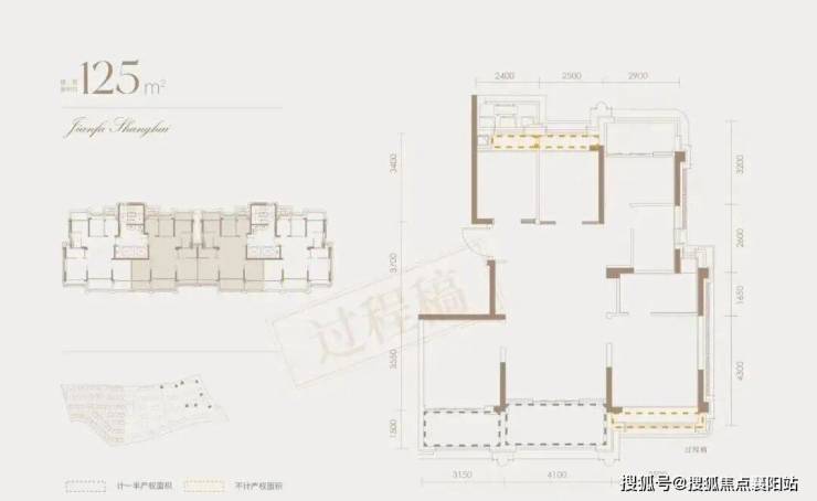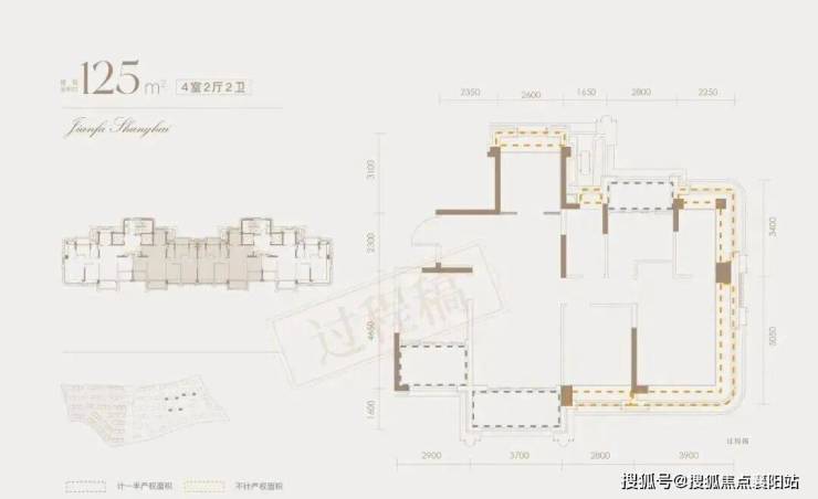 建面约125㎡四房两厅两卫:洋房“爆款户型”,三阳台+四飘窗,实得率约88%,居住体感近140㎡