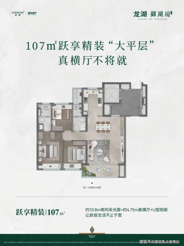 约107㎡精装交付大三房,小户型住出“大平层”的体验, 4.75米的真横厅,满足客厅的功能上,还能附加工作台、健身区、阅读角等个性化需求,轻松实现一厅多用;较去年观萃更是升级了独立餐厅,更具仪式感的用餐体验, 真正兼顾功能及改善的“完美三房”。