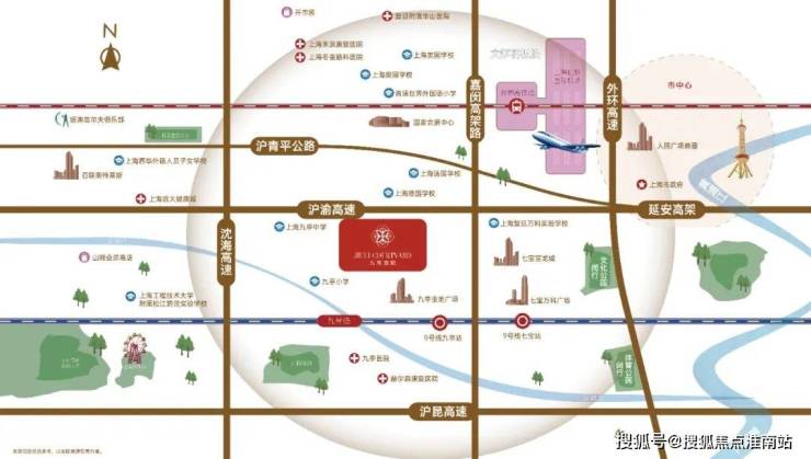 在虹桥规划落地后 ,商务区超过百万方体量的商办+日吞吐量约20万人次的交通枢纽所带来的人口资源,统统通过嘉闵高架导入到九里别院所在的区域。换句话说,不管是上海内部的商务对接,洽谈业务,亦或者是全国范围内的资源利用、置换,大虹桥都是磅礴红利的中心位置。商业、产业资源方面, 大虹桥的“虹桥总部+腹地基地”、“虹桥贸易+腹地物流”、“虹桥商务+腹地休闲”的功能布局和总部经济也已蔚然成型。
