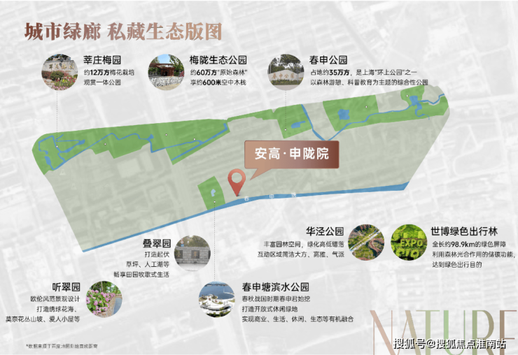 项目周边有多个生态公园,约60万方的梅陇生态公园、约35万方的春申公园、约12万方的莘庄梅园以及春申塘滨水公园等等,生态宜居属性拉满!
