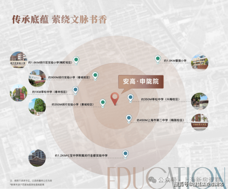 手握优渥的上海文教资源——闻名遐迩的闵行区实验小学、莘松中学,双优教为邻。(注:期房不承诺学区,以交付后教育局公告为准)