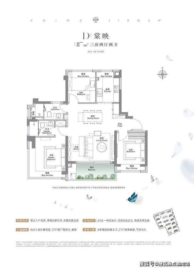 上海宝山金茂棠前营销中心热线4008818994(官方预约热线)建面约117㎡3房2厅2卫,做到了3+1开间朝南5个飘窗+主卧套房设计+270°转角飘窗,所有的尺度都有进一步提升。