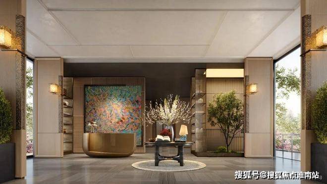 上海宝山金茂棠前营销中心热线4008818994(官方预约热线)约32米气派门厅,入口采用三重弧形石材墙体+圆角幻彩穿孔顶,四重酒店式归家厅堂,让每一次归家都充满仪式感。