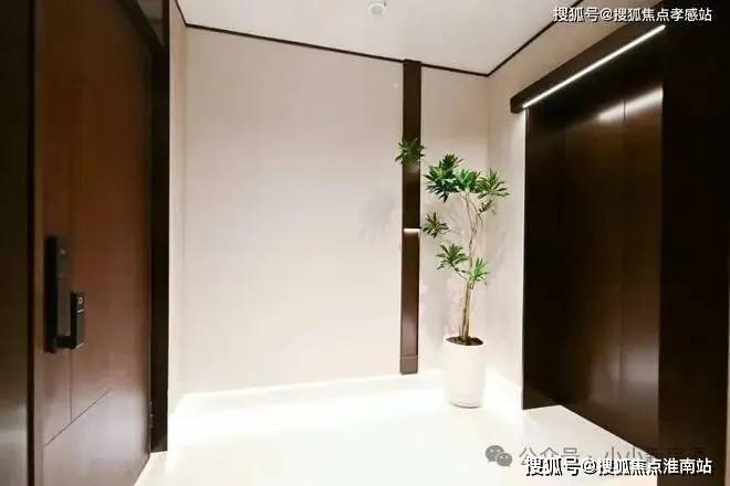 颇具质感的暗色系电梯和入户大门,与浅色墙体形成了强烈的色彩冲击。