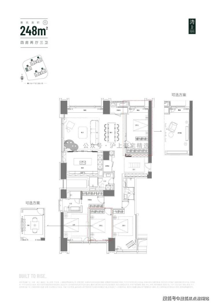 【龙盛·湾上】每一期样板间都给年轻菁英人群带来不一样的亮点,不断升级装修标准及用材等,这次项目建面约248㎡户型更是设计出选配方案,户型设计可以根据自身需求定制化选择: