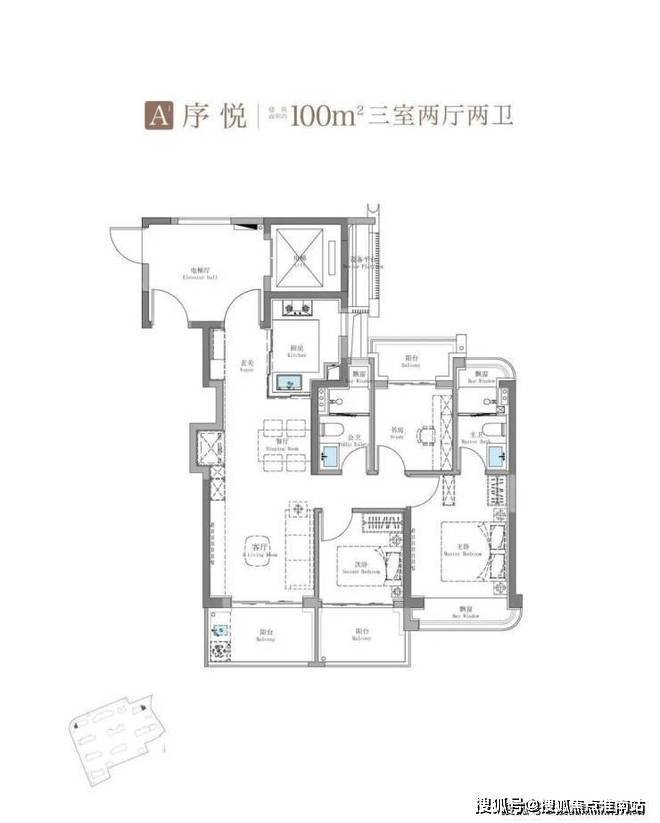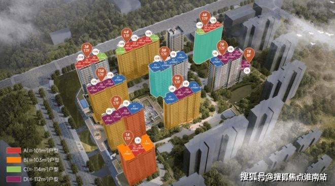 产品类型:建筑面积约100-114㎡3房、建筑面积约143㎡4房