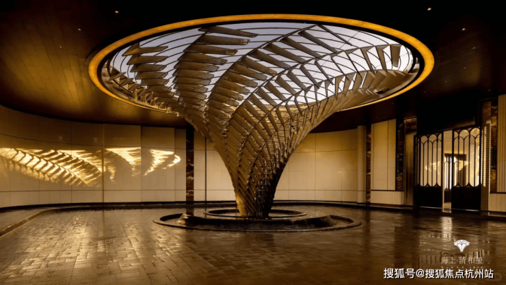 再仔细看细节,顶部香槟金色格栅塔冠以及壁柱采用香槟金和白色色调,将海派与现代之美生动演绎。