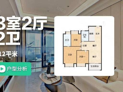 112㎡ 3 房 2 厅 2 卫:均价约 11.0-11.9 万 /㎡,总价约 910-1300 万
