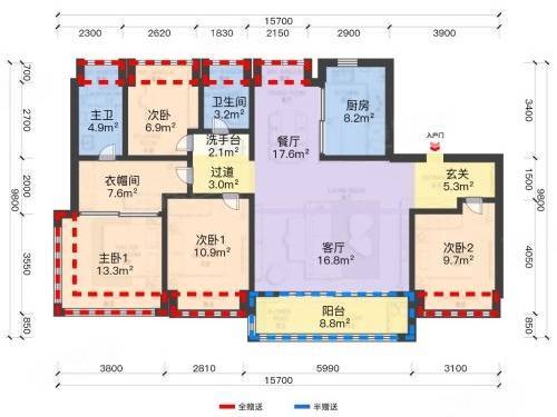 177㎡ 4 房 2 厅 3 卫:总价约 1988-2380 万