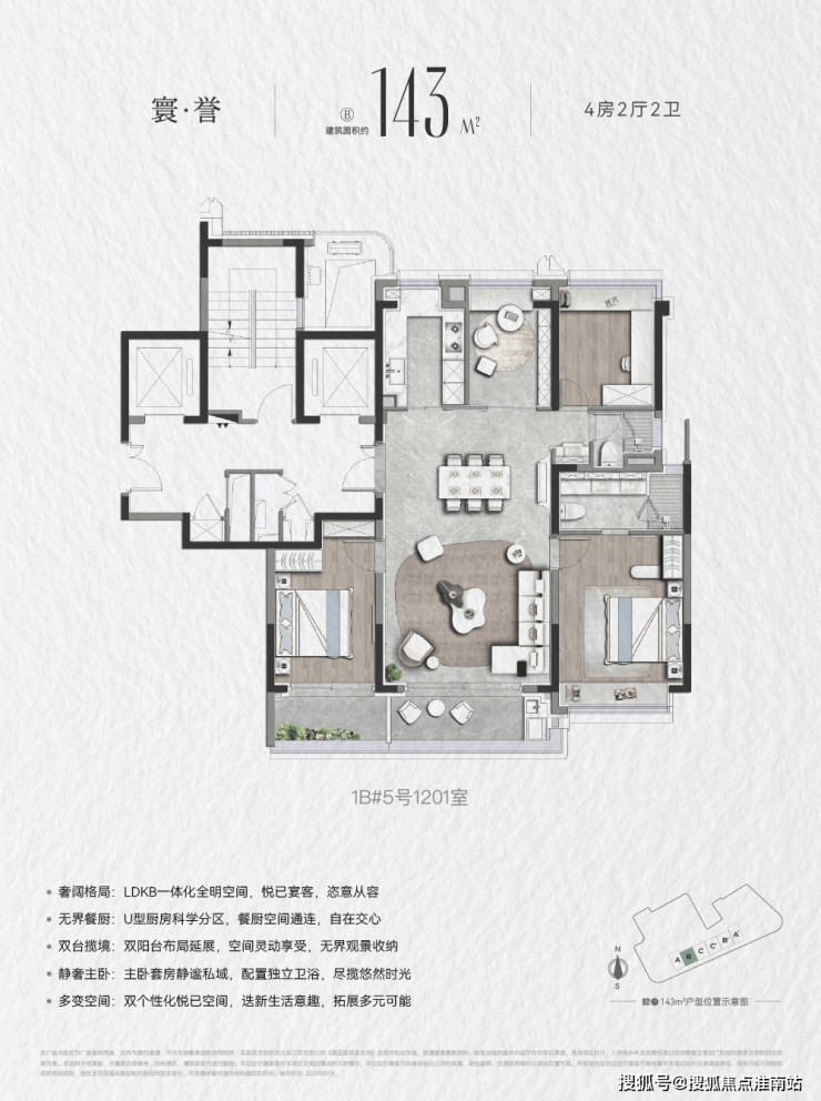 户型方面,项目主推建面约100-143㎡3-4房,预计首开96套建面约143㎡4房。具体户型如下: