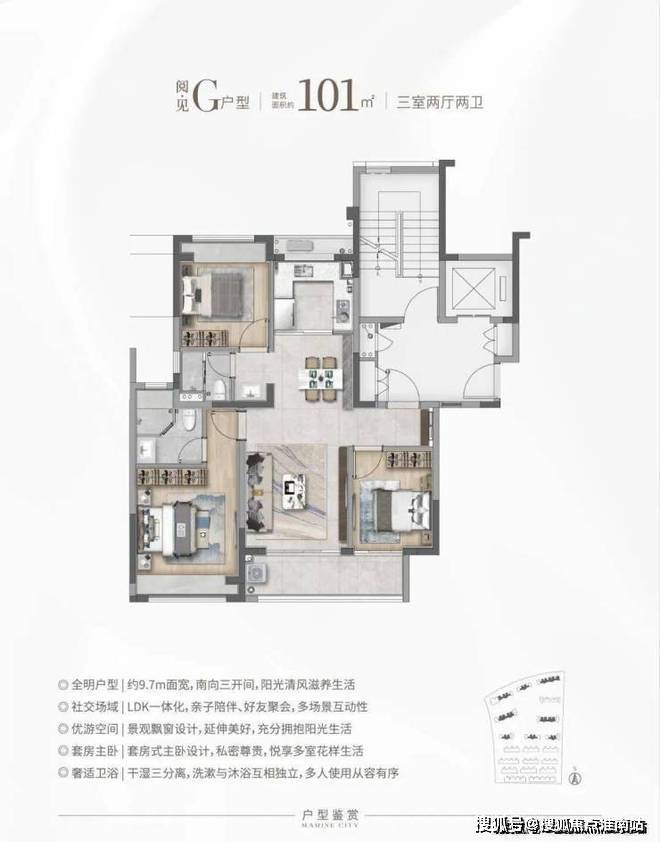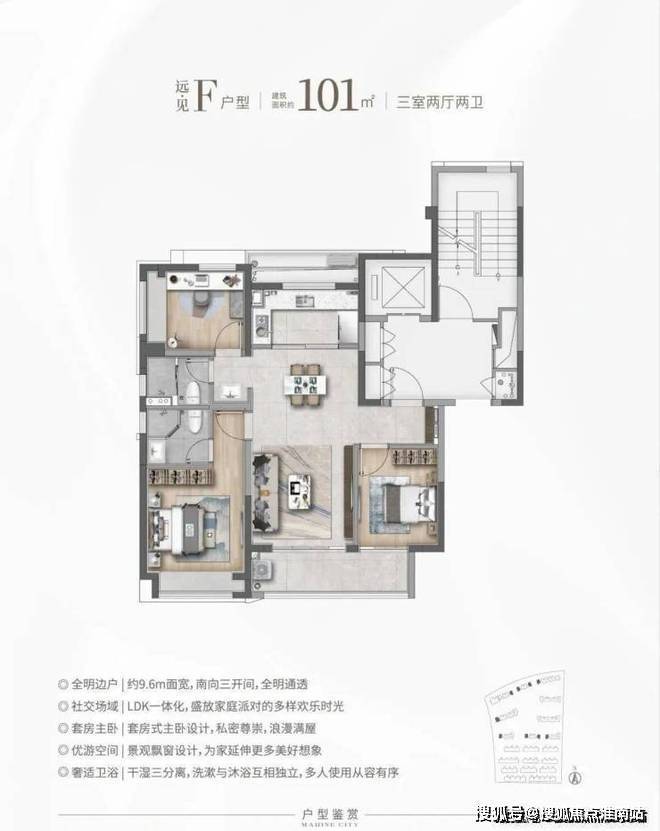 项目涵盖高层住宅与叠拼别墅两种产品类型,满足不同家庭居住需求。高层住宅主打92平方米和101平方米三房户型,精装交付,装修标准达4000元/平方米,涵盖地暖、中央空调、新风系统等核心配置。叠拼别墅则分为上叠、中叠与下叠,面积在90-136平方米之间,毛坯交付,给予业主更大自主装修空间。