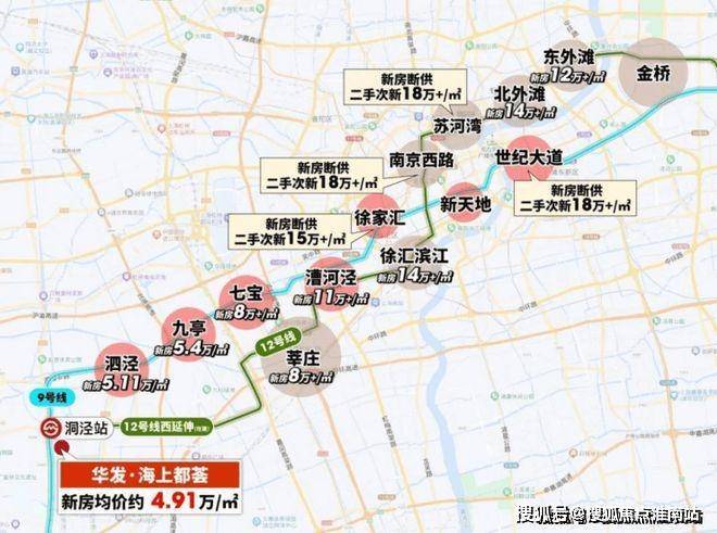 12号线,莘庄的新房价格8万/㎡,再往前的徐汇滨江、南京西路等市中心的价格已是高不可攀。