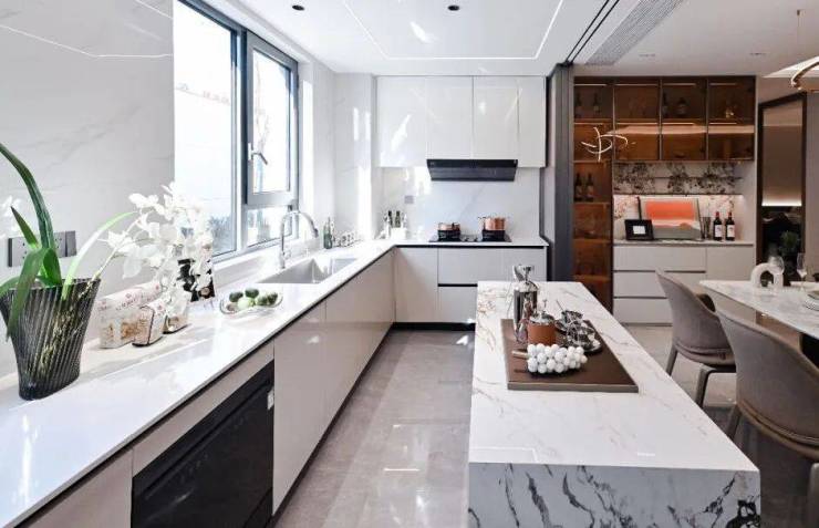 厨房方面,选用了方太手感智控油烟机、智控燃气灶、蒸烤一体机及洗碗机,龙头和水槽均是科勒3M的厨下式净水器;卫浴方面,则配有杜拉维特的台盆,汉斯格雅的台盆龙头及花洒,科勒的马桶和浴缸等,生活的每一处细节,都能精准把握。(同品牌或同等品牌,以交付为准)