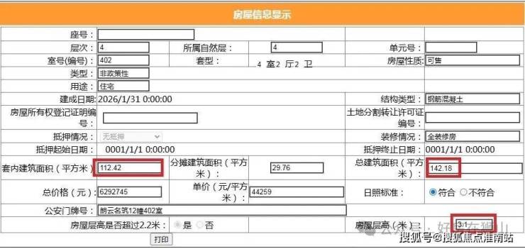 层高3.1米得房率79.1%