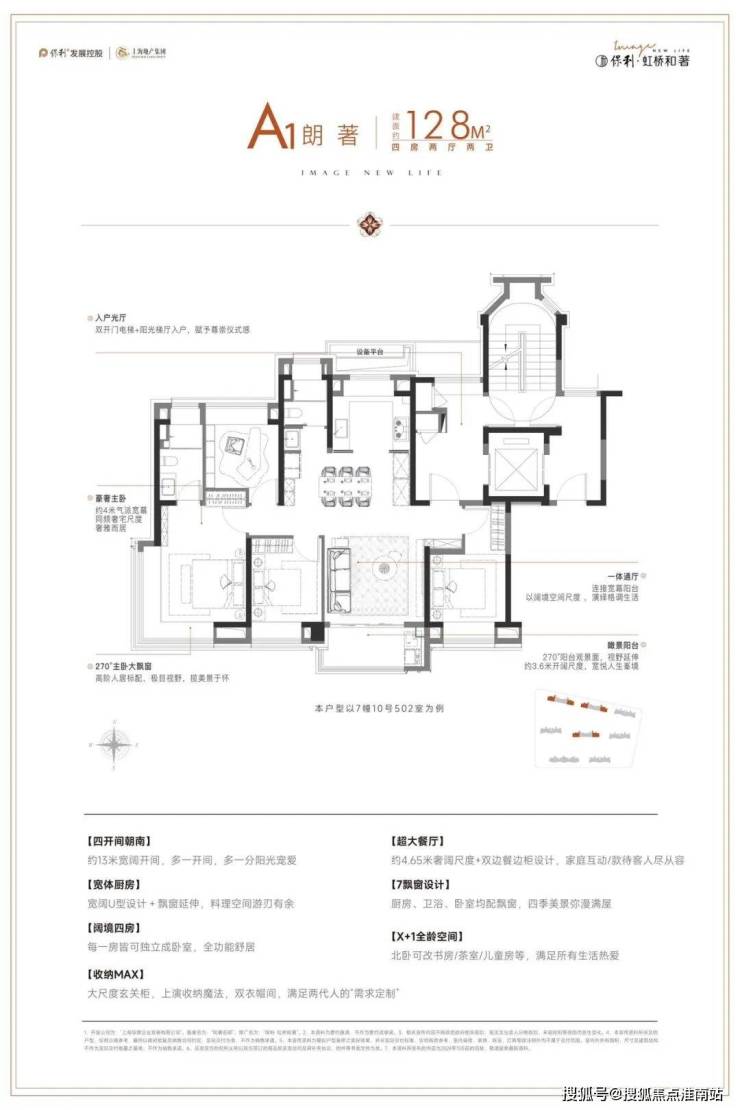 南向四大开间,精心铺排阔绰人生;X+1全龄空间,让家人各有其室,其乐融融;全屋7飘窗设计,赋予生活更多场景;主卧套房尊配衣帽间,时尚华服尽心收纳。