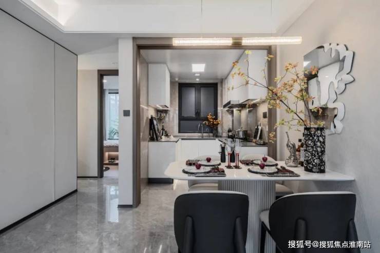 客餐厅的颜值超高,地砖、墙布都在交付标准里,整体风格更为统一,将好看+好用发挥到了极致!