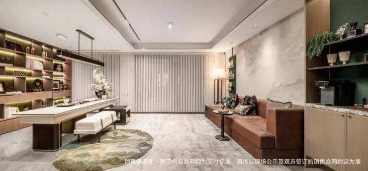 除此之外,项目的大面宽用餐区即使放下6人大桌也很宽敞,大进深客厅可以让全家人围坐在一起享受天伦。