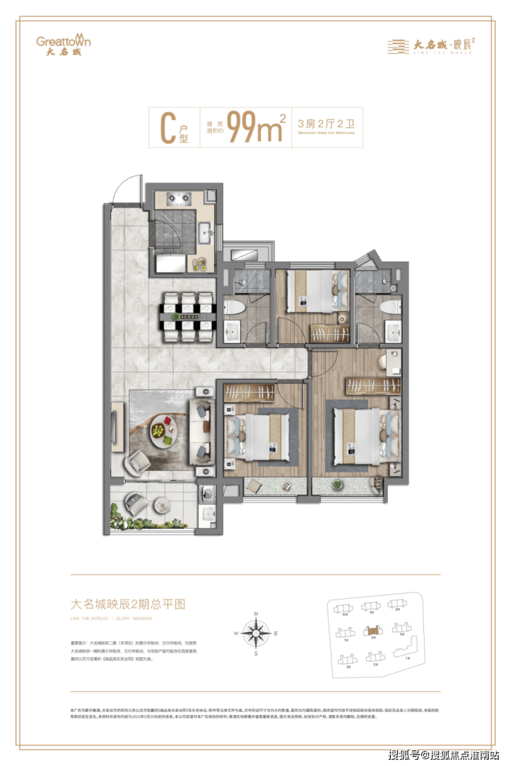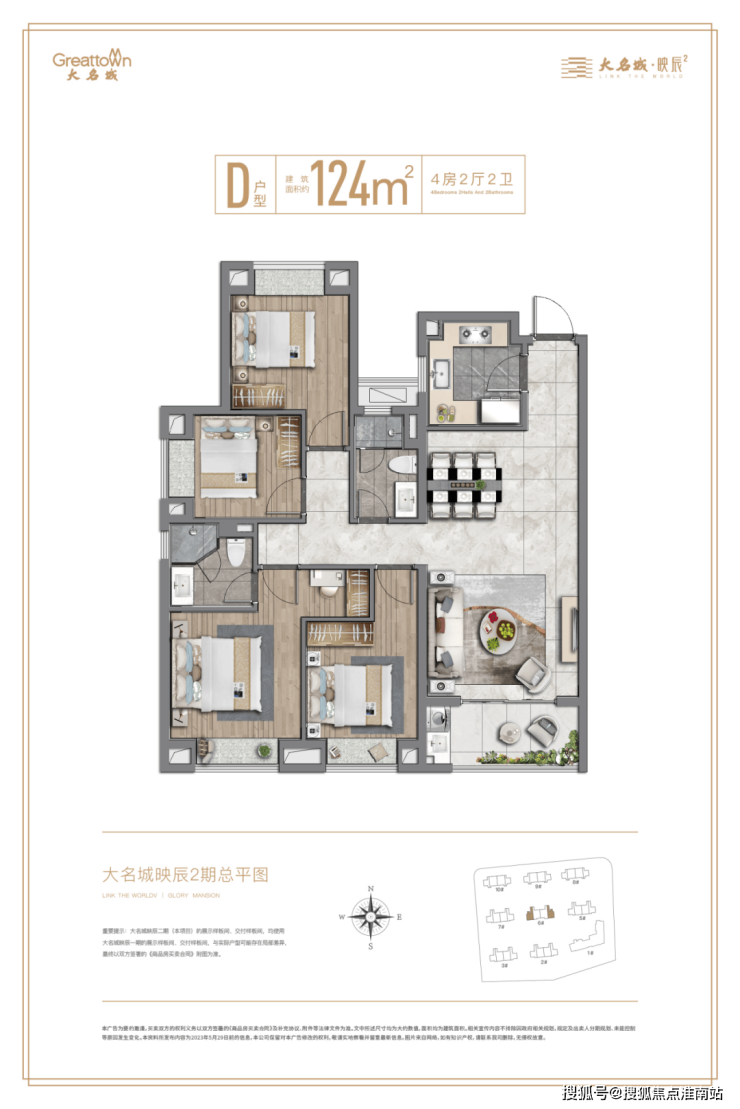 除了地段和配套实力,映辰二期在产品的打造上也别具匠心。项目由双股上市房企、2023年房地产上市公司综合实力50强——【大名城】匠心打造,传承“紫金系”精工品质,在深刻洞察时代青年的居住需求后,二期新品在一期的基础上,进行多维度的升级,敬献亲水活力社区。
