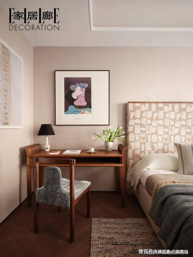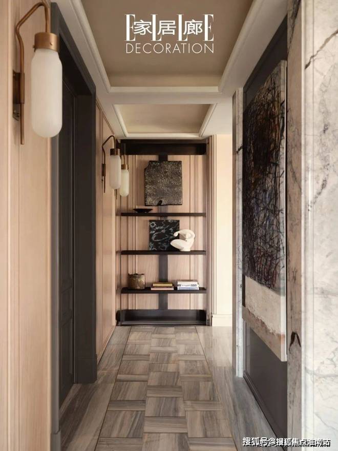 万科中兴傲舍售楼处电话☎:400-9659-259(预约看房热线)此外,空间中也尝试了基于材料的更多设计演化。父母房的吊灯同为特别定制,灯线采用皮革进行包裹,通过工艺的价值感深化作为长者空间的稳重气质。同时,为了弱化墙面较为密集的纹理对视觉的干扰,团队利用不同体块和肌理的艺术画作、艺术纸对墙面进行视觉转移。