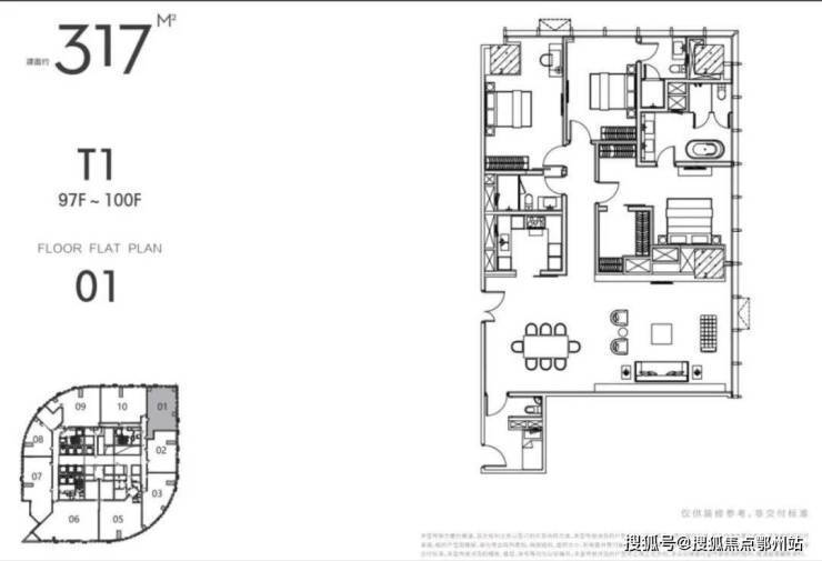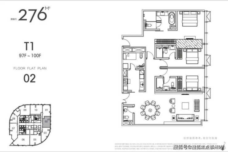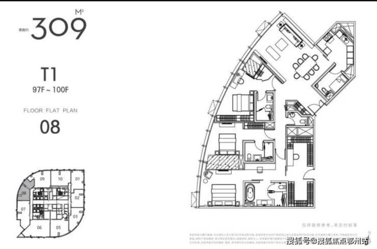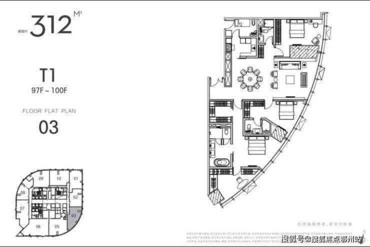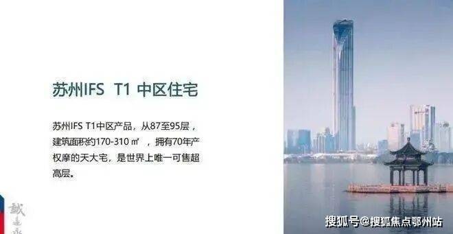 “江苏第一高”“全球十大可售超高层地标住宅”,世界上唯一可售超 高层;L97-L100 云端摩天大宅,70年产权,垂直高度327米起;