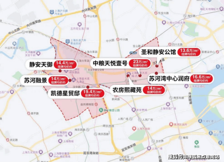 第二、苏河湾的标杆住宅基本都在20万/㎡左右,次一级、房龄较老的品质改善房基本都在约14万/㎡以上。可以说,苏河湾的豪宅成交量&价,都已经超过了静安寺、南京西路,成为了静安新一代的标杆,住苏河湾是一种身份象征。