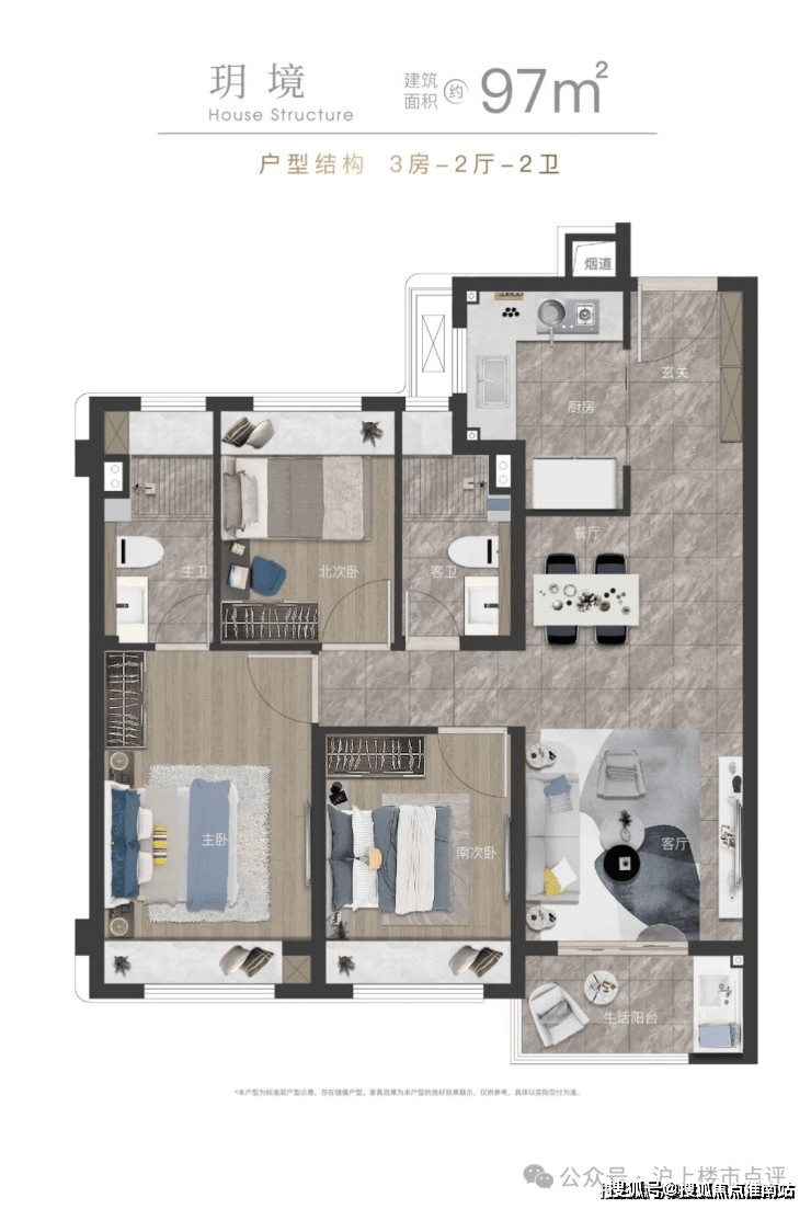 保利明玥宸光售楼处电话:400-9659-259拒绝2+1房型的尴尬与局促,宸光真3房设计,满足功能性需求的同时,追求居住的舒适度,尤其是对于成长型家庭来说,约97平户型兼具总价适中和生活品质,非常难得!
