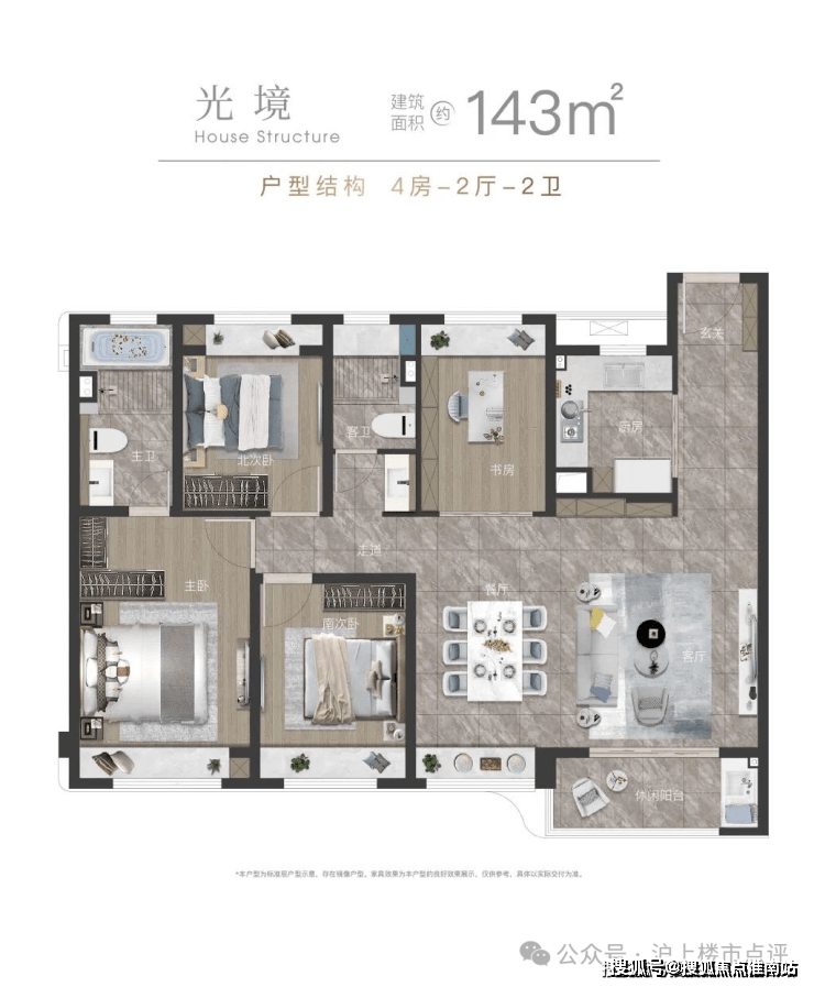 【主力户型】:建面143㎡四室、建面97㎡三室