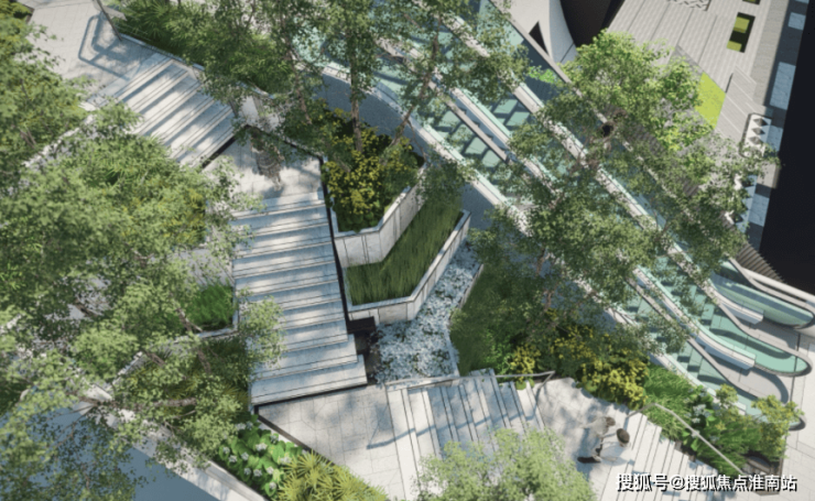 除南侧无敌城市视野外, 楼王北侧与3#楼间距约60米 ,享奢阔栋距,同时又将森感公园的葱郁树冠纳入窗前画卷,南北景观环绕。值得一提,项目高线公园打造“三大花园·六大游园”体系,提供丰富的体验场景,而在 楼王东侧就是三大花园的其中之一,也是艺术感最强的一个花园,将结合艺术装置和台阶,为业主提供舒适闲坐、眺望树冠景观的空中露台。