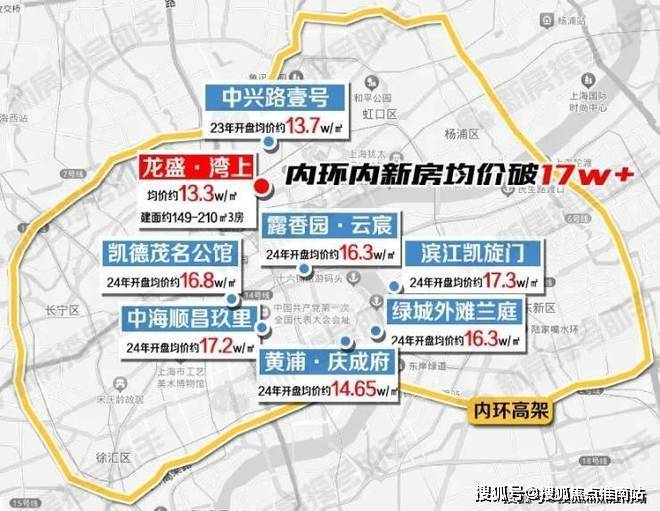 今年内环重磅事件:新房均价突破17w+大关,并且销售情况都十分震撼!中海顺昌玖里17.2w的均价,200亿货值当天售罄!同样内环内的「龙盛·湾上」一期才13.3w/㎡,价格优势突出!(数据来源于网上房地产,仅供参考)