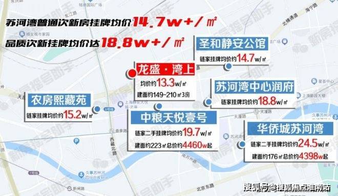 「龙盛·湾上」所在的苏河湾板块,次新房挂牌均价势头依旧迅猛,普通次新房的链家挂牌均价在15w/㎡左右,而品质次新豪宅已经达到18.8w/㎡以上,而「龙盛·湾上」一期均价仅约13.3w/㎡,与其品质相当的次新豪宅相比存在约66%的倒挂率。(数据来源于链家网,截止于5月17日,仅供参考)