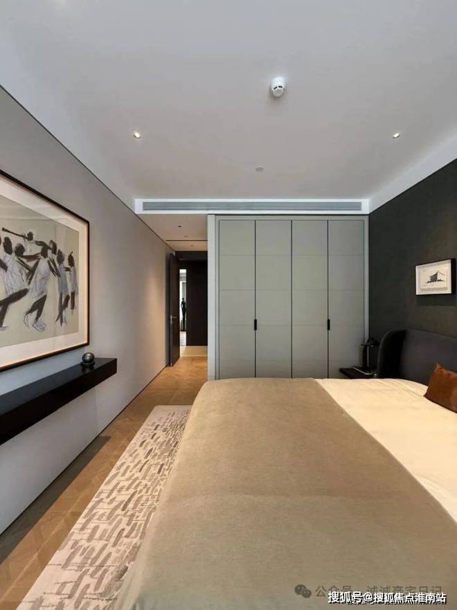 边套户型横厅设计,客厅约5.3米的面宽保证了空间的尺度感,客厅及南侧卧室的大面积落地窗,加上北面大面积飘窗,约270度的采光+视野,保证了室内充足的自然光线。两南一北的卧室布局,尽可能把南向尺度给到卧室,提高居住的舒适性。宽敞的步入式衣帽间,主卫双台盆和宽敞的淋浴区,每一个清晨都是感官的享受,每一个夜晚都是身心的彻底放松。